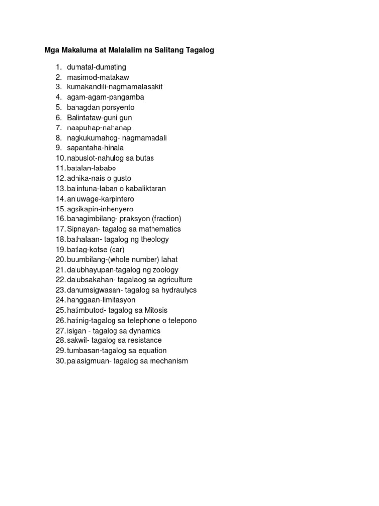 Mga Makaluma At Malalalim Na Salitang Tagalog Pdf