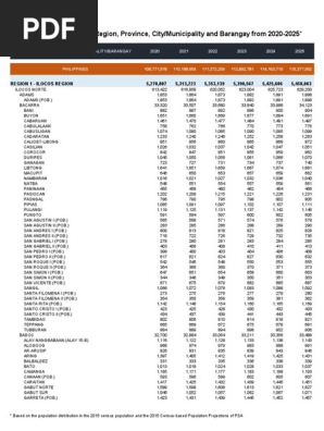 Philippine Central Product Classification PCPC Philippine Standard Industrial Classification PSIC. 1 income generating in the municipality. Name Status Population Census 1990-05-01 Population Census 2000-05-01 Population Census 2010-05-01 Population Census 2015-08-01 Population Census 2020-05-01.