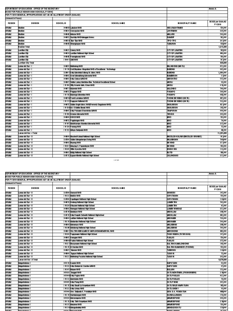 Annex A Gaa Allocations Of Shs Mooe List Of Recipients Pdf Philippines